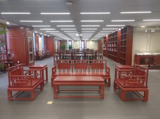 圖片說明:五樓六樓采用中式裝修,自修桌椅也用紅木制作。