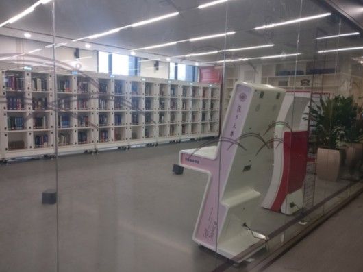 圖片說明:自助取書柜,學(xué)生預(yù)約后可以來此取書。