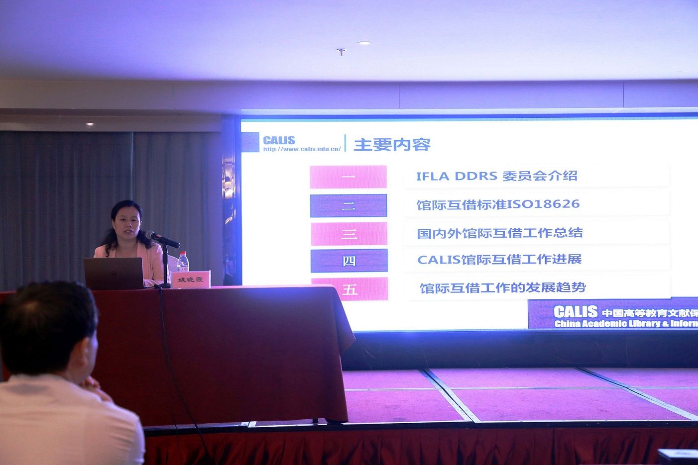 會議第二階段為專題講座時間,由湖南師范大學圖書館黨總支書記鄢朝暉主持。中國高等教育文獻保障系統(tǒng)管理中心(CALIS)秘書長、北京大學圖書館研究館員姚曉霞做了關于《館際互借工作:回顧與展望》的專題講座。姚曉霞從IFLA DDRS委員會介紹、館際互借標準ISO18626、國內外館際互借工作總結、CALIS館際互借工作進展、館際互借工作的發(fā)展趨勢等方面作了全面的介紹。