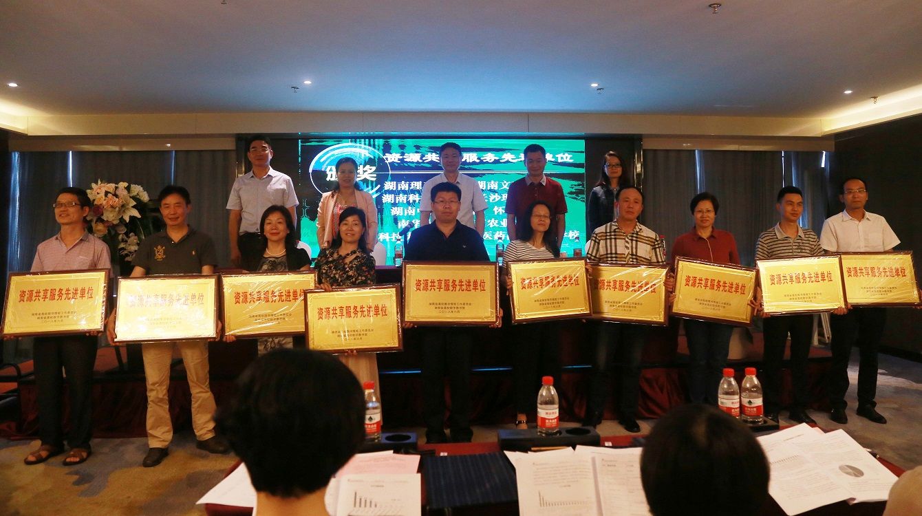 接著湖南師范大學圖書館副館長龔曉林宣讀了湖南省高校數(shù)字圖書館文獻傳遞服務示范單位、資源共享服務先進單位評選結果,主席臺上的領導和嘉賓為獲獎單位頒發(fā)了獎牌。湖南大學圖書館研究館員何平老師、吉首大學圖書館副研究館員劉曉鳳老師、湖南文理學院圖書館劉安吾館長作為獲獎單位代表分別對本校的文獻傳遞服務工作做了總結,并分享了先進經(jīng)驗。
