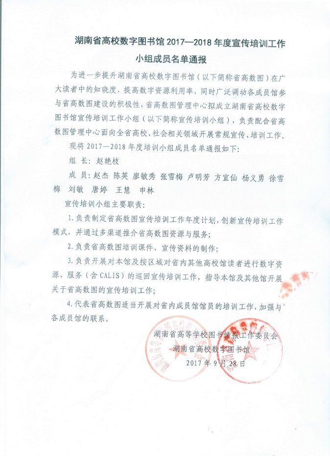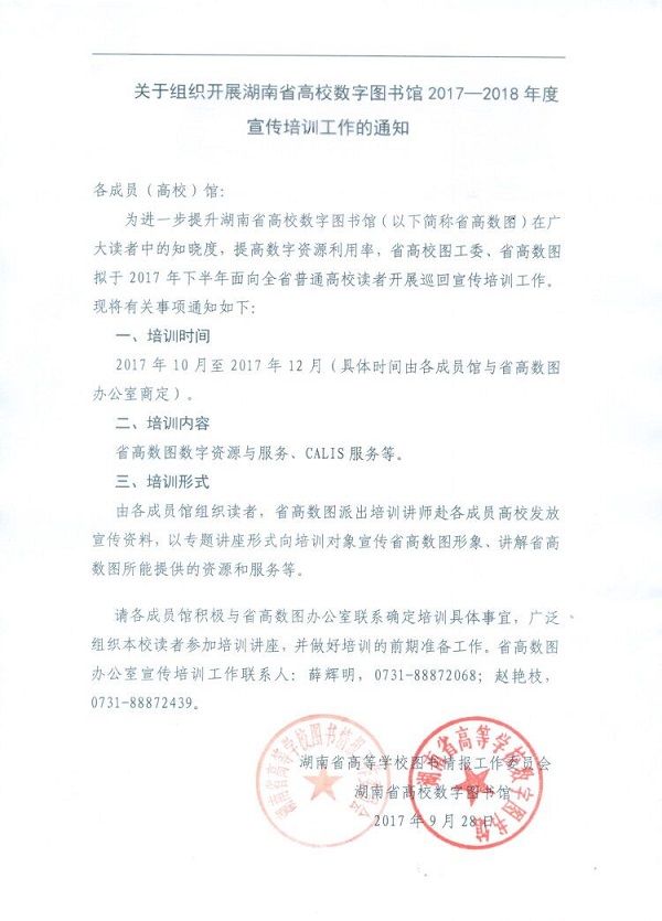 為進(jìn)一步提升湖南省高校數(shù)字圖書館(以下簡(jiǎn)稱省高數(shù)圖)在廣大讀者中的知曉度,提高數(shù)字資源利用率,省高校圖工委、省高數(shù)圖擬于2017年下半年面向全省普通高校讀者開展巡回宣傳培訓(xùn)工作。