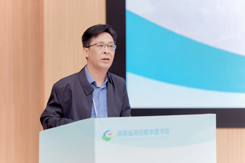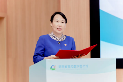 謝資清代表湖南師范大學(xué)對(duì)與會(huì)的領(lǐng)導(dǎo)、專家及來賓表示熱烈歡迎,并介紹了學(xué)校的基本情況。她指出,在省教育廳、省高校圖工委、各成員高校的大力支持及共同努力下,高數(shù)圖項(xiàng)目成功輻射全省39所本專科院校,為百萬師生提供堅(jiān)實(shí)的文獻(xiàn)信息保障,成為全省高校教學(xué)科研工作的重要公共服務(wù)基礎(chǔ)設(shè)施,有效支撐了我省高等教育的高質(zhì)量、內(nèi)涵式發(fā)展。她表示,高數(shù)圖將繼續(xù)服務(wù)教育數(shù)字化發(fā)展戰(zhàn)略,為高等教育高質(zhì)量發(fā)展賦能增效。