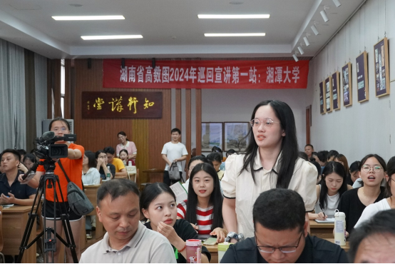 9月11日,湖南省高校數(shù)字圖書(shū)館(簡(jiǎn)稱高數(shù)圖)二十周年巡回宣講活動(dòng)在湘潭大學(xué)成功舉辦。湖南省高校圖工委副秘書(shū)長(zhǎng)譚柏華、湖南師范大學(xué)圖書(shū)館副館長(zhǎng)胡開(kāi)勝參加。活動(dòng)由湘潭大學(xué)圖書(shū)館副館長(zhǎng)曾湘瓊主持。
