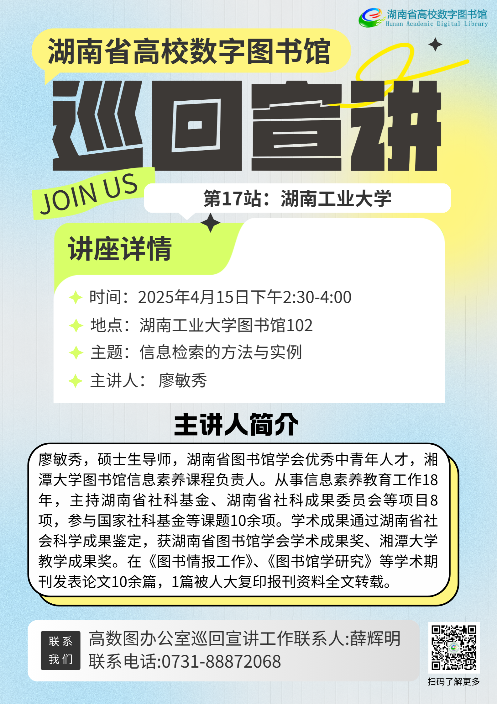 宣講預(yù)告 | 湖南省高校數(shù)字圖書館巡回宣講第17站——湖南工業(yè)大學(xué)